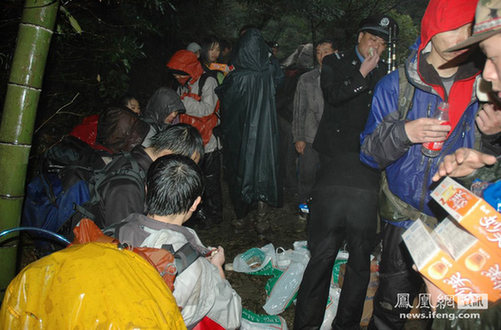 ????12日下午,這18名大學(xué)生被困在黃山云谷寺風(fēng)景區(qū)峽谷,上海與安徽兩地公安部門(mén)迅速聯(lián)動(dòng),立刻展開(kāi)救援行動(dòng),黃山市派出由公安、消防、綜治、防火等部門(mén)組成的230多人的救援隊(duì)伍。圖為獲救的大學(xué)生驢友前來(lái)送行。