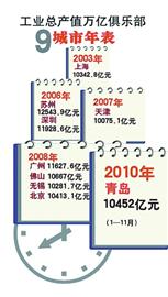 ????昨天上午,全市工業(yè)經(jīng)濟超萬億企業(yè)發(fā)展峰會在香格里拉大飯店舉行。會上宣布,截至今年11月底,我市規(guī)模以上工業(yè)企業(yè)產(chǎn)值達到10452億元,成為全國第九個工業(yè)經(jīng)濟過萬億的城市。