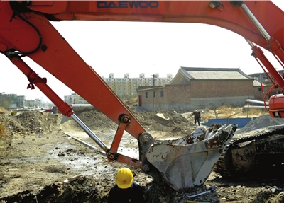 ③2009年,徐家拒絕拆遷,挖掘機在其門前施工。(資料圖片) 本報記者朱嘉磊攝