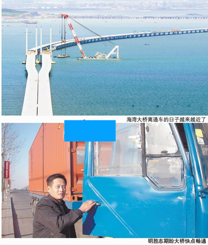 ????剛說著,明勝志的同事從外面進來,他打了個招呼接著說:“剛才這個是跑八號碼頭的,從膠州到八號碼頭起碼也得一個半小時,如果市區(qū)再遇上堵車,就更不好說了。”跨海大橋是明勝志和同事們的希望:“如果走跨海大橋,我去黃島的時間就能縮短一半,成本也能減少一半。之前一天跑兩趟得耗油200塊錢,走跨海大橋100塊錢就行了。從膠州去八號碼頭也一樣,40分鐘就過去了,這樣一天還能跑好幾趟。所以,按照公司規(guī)定,2011年我們的業(yè)務(wù)還得再擴大30%,能給我們帶來大利潤啊?!?/p>