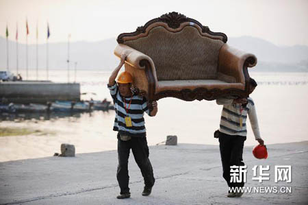 ????4月8日,中國(guó)漁政船只??吭诩磳⒈徊鸪摹昂I匣蕦m”外。新華社“新華視點(diǎn)”欄目曾四度報(bào)道的深圳“海上皇宮”事件又有新的進(jìn)展:4月8日,深圳市有關(guān)部門對(duì)“海上皇宮”進(jìn)行第二次拆除。記者8日下午獲悉,深圳市龍崗區(qū)農(nóng)林漁業(yè)局(海洋局)當(dāng)天對(duì)位于深圳龍崗區(qū)南澳街道東山灣海域內(nèi)的違法建筑“海上皇宮”展開(kāi)拆除行動(dòng)。記者驅(qū)車趕到現(xiàn)場(chǎng)后看到,與海岸相距不遠(yuǎn)的“海上皇宮”已經(jīng)被拉上警戒線,巨大的沙發(fā)、壁柜、桌案和床架正在從“海上皇宮”撤出,被搬放到岸邊的倉(cāng)庫(kù)內(nèi)。龍崗漁政部門有關(guān)負(fù)責(zé)人介紹說(shuō),由于體量巨大,拆除行動(dòng)將持續(xù)一段時(shí)間,不會(huì)很快結(jié)束。