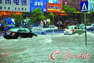昨日,廣州黑云壓城,廣州市三防辦在18時(shí)20分掛起廣州市區(qū)暴雨黃色預(yù)警信號(hào),18時(shí)50分更是發(fā)出廣州市區(qū)雷雨大風(fēng)藍(lán)色預(yù)警信號(hào)。記者隨即巡城發(fā)現(xiàn),天河區(qū)海珠區(qū)雨點(diǎn)稀疏,沒有發(fā)生嚴(yán)重的內(nèi)澇;下雨的區(qū)域主要集中在荔灣區(qū)和白云區(qū),荔灣區(qū)一度刮起大風(fēng),有綠化樹被風(fēng)吹斷;白云區(qū)則電閃雷鳴,形勢嚇人。幸運(yùn)的是,昨日大雨并未像去年5月7日的暴雨造成城區(qū)嚴(yán)重的內(nèi)澇。