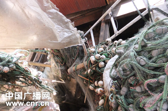 漁船冀昌漁5056號(hào)甲板凌亂不堪(中國(guó)之聲記者陳俊杰/攝)
