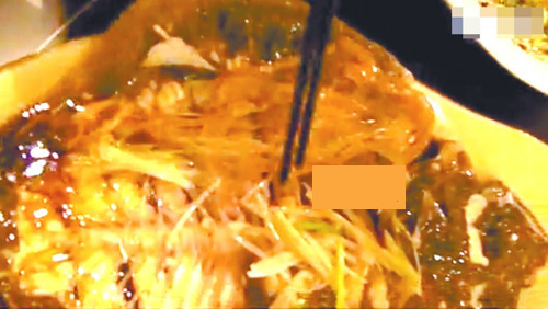 ????5月30日晚上,為了給寶寶辦生日宴,青島王女士一家去了位于熱河路上的新龍?jiān)创缶频辍?沙燥埑缘揭话氲臅r(shí)候發(fā)生了令人作嘔的一幕:從一條多寶魚身上竟然夾出了塑料異物。事后,此事雖當(dāng)場(chǎng)得到處理,但王女士對(duì)酒店當(dāng)時(shí)的態(tài)度并不滿意。