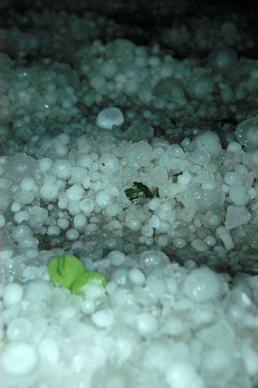 24日晚間,河南省西部一些地區(qū)遭遇罕見強對流天氣,其中嵩縣受到冰雹等多種災害性天氣襲擊,有的冰雹甚至大如核桃,部分地區(qū)供電和交通中斷。河南省氣象臺提供的實況監(jiān)測顯示,從24日20時至24時,嵩縣降水量達到55.8毫米,縣城部分地區(qū)積水達1.2米;最大風力為24.4米/秒,為10級風,同時全縣普遍遭遇冰雹襲擊,冰雹直徑達6公分。目前,嵩縣強對流天氣已結束,供電和交通也已基本恢復正常。新華社發(fā)(羅孝民 攝)