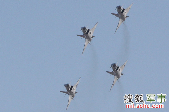 資料圖:空軍60周年飛行表演。圖為殲十多機(jī)編隊(duì)。攝影:劉峰