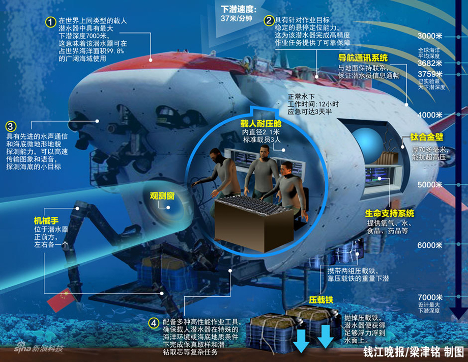 | 問題:請問,蛟龍?zhí)栆坏┌l(fā)生意外,艇員如何逃生? 唐嘉陵:蛟龍所有設(shè)備都在實驗室壓力筒進行了反復(fù)71.5Mpa的打壓測試;如出現(xiàn)意外,蛟龍除可拋棄上浮壓載,還可拋棄四百多公斤的水銀、一噸多重的主蓄電池箱;機械手、采樣籃如果被纏繞都是可被拋棄的;蛟龍還配備應(yīng)急浮標救援纜、微浮力凱夫拉纜。 |