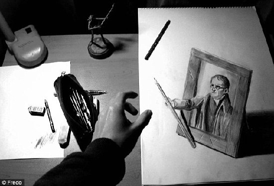 伊諾斯特羅薩作品:畫中男子欲把手中的筆遞給伊諾斯特羅薩。
