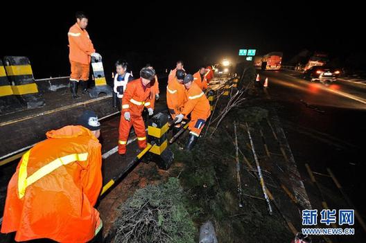 1月3日,路政工作人員在清理事故現(xiàn)場。新華社記者 白禹 攝