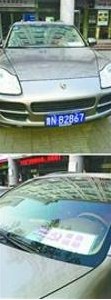 在網(wǎng)絡(luò)上傳的照片中,記者看到該車確為香檳色保時捷卡宴,車牌號為“魯NB2B67”,而且的確插標(biāo)了“廉政調(diào)研”標(biāo)志牌,該標(biāo)志牌底部有“車證:007號”的小字標(biāo)注。照片中的背景是中國銀行。