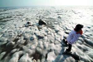 1月25日,一名小朋友在江蘇海州灣北部贛榆近海的海冰上玩耍。受冷空氣影響,江蘇省海州灣北部被大面積海冰覆蓋,近海漁船被海冰凍住。國家海洋局監(jiān)測顯示,春節(jié)期間,我國北部海區(qū)氣溫維持低值,渤海及黃海北部冰情有明顯發(fā)展。(新華社發(fā))