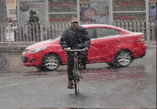 青島市區(qū)迎來龍年首雪(尚品 攝)