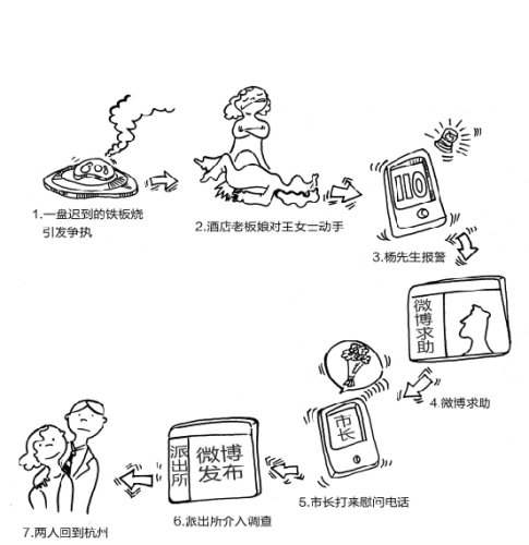 用餐時遭餐廳老板娘追打,懷孕女游客差點流產(chǎn) 張家界市長致電慰問被毆杭州游客 當?shù)匾殉闪0附M,將給出一個公正的處理結果 夫妻倆昨晚回程,孕婦將送入醫(yī)院接受保胎治療 因為上菜時和當?shù)匾患绎埖甑睦习迥锇l(fā)生口角,已經(jīng)有兩個多月身孕的王女士不但被扇了耳光,還被推倒在地,被迫滯留張家界接受長期保胎治療。 當楊先生把這件事情發(fā)到微博上后,已有7000多人主動轉發(fā)。 好在,事發(fā)后,在張家界市一名官員的推動下,當?shù)卣块T給予了足夠的重視,不但在網(wǎng)上積極公開回應,該市市長還親自致電王女士進行了慰問。 昨天晚上10點半,楊先生夫妻終于踏上了回程的班機,而當?shù)卣膽B(tài)度,也讓他們暫時松了一口氣。 事件起因 點了四道菜,最后一道遲遲未上 昨天下午4點,記者聯(lián)系上楊先生時,他的聲音聽起來很疲憊。這兩天既要照顧老婆,又要擔心未出生孩子,他幾乎一分鐘都沒有消停過。 而這一切的一切,還要從大年初五晚上他們抵達張家界市旅游的那一刻說起。 楊先生的原籍就在張家界市,只不過多年來一直在外打拼,現(xiàn)在已經(jīng)有了不小成就,和妻子定居杭州。 因為熟知張家界風景秀麗,今年春節(jié)期間,楊先生帶著懷孕兩個多月的妻子王女士自駕去那里游玩。 大年初五晚上7點多,兩人抵達目的地,在一家快捷酒店住下,長途奔波的他們,肚子早就餓了。 “我們出門逛了逛,不少店家都沒開門。我們就挑了一家做東北菜的餐館,叫‘如意東北人家酒樓’。光是看門面,還是不錯的?!?/p> 進門后,夫妻倆找了個位置坐下,點了4個菜,其中有一道是東北鐵板燒。而惹出事端的,正是這道菜。 “前面三道菜上得還算快,大概20分鐘就上齊了。因為我老婆是孕婦,吃飯不能太快,我們慢悠悠地吃,不知不覺就吃了1個多鐘頭。” 可令楊先生沒想到的是,這最后一道鐵板燒,居然過了1個多小時都沒端上來。 遲到的鐵板燒引發(fā)爭執(zhí),孕婦被打 “當時我們已經(jīng)吃飽了,也不想等了,就和服務員說結賬,這道菜不要了。這時他們老板娘過來了,問了問廚房,說是菜已經(jīng)在燒了。” 楊先生他們當時就說這菜上得太慢,他們已經(jīng)吃飽了,再吃也吃不下,不想要了??删频昀习迥锊灰啦火垼趺匆膊煌?。 “我老婆就說,要么付一半錢,菜不要了,對方還是不同意,一定要我們付錢?!?/p> 楊先生覺得出門在外,多一事不如少一事,最后還是把4個菜的錢都付了,并拉著王女士向店外走去。 “我們已經(jīng)走到門口了,菜也不想要了??伤酥朔诺搅俗雷由希臀覀冋f‘這菜你們要吃還是要打包,要是想倒了也隨你們,只要別倒在店里’?!?/p> 楊先生說,他們覺得自己已經(jīng)把錢給付了,這人還這樣說話,心里很不舒服。王女士就端起盤子走到店外,把菜倒在了路邊的垃圾堆里。 “這個過程中雙方吵了幾句,沒想到老板娘就追出去了,打了我老婆一耳光。” 楊先生見對方動了手,趕緊隔在當中,并大聲表明王女士有孕在身。沒想到對方不但沒停手,還把王女士推倒在路邊。 后來,事情越鬧越大,楊先生報了警。張家界市永定派出所的民警出了警,王女士也被送進醫(yī)院檢查。醫(yī)院初步診斷為先兆流產(chǎn)、皮膚軟組織挫傷、遲發(fā)性內(nèi)臟損傷待查,需要做長期積極保胎治療。 事件進展 求助知名官員微博,市長打來慰問電話 事情發(fā)生后,作為一個外地游客,人生地不熟的,站在醫(yī)院走廊里的楊先生覺得心里沒底,也不知道事情會怎么發(fā)展。 困境中,他想到了向曾經(jīng)當選政務微博十大官員的張家界市城管局副局長龔厚欽求助。他當即發(fā)了微博,并通過私信聯(lián)系龔厚欽。 “確實很感謝龔局的幫助,在他的幫助下,當?shù)卣囊恍╊I導干部了解到了這個事情,給與了我們更多關注。” 楊先生說,1月29日下午,張家界市市長趙小明給妻子王女士打來電話,并對她的傷情、醫(yī)療環(huán)境進行了詢問。 1月30日下午,趙市長又委托一名副秘書長攜帶著水果禮品和3000元慰問金趕到醫(yī)院看望楊先生他們,不久后張家界市公安局局長也帶著禮品和1000元慰問金來到醫(yī)院看望。 “雖然我對事情一開始的一些處理方式感到不解,但當?shù)卣诤罄m(xù)方面所做的一切還是讓我們普通老百姓覺得滿意的?!?/p> 當?shù)夭块T表示道歉,成立專案組調查 1月31日,永定派出所在他們的官方微博上發(fā)布了初步的調查情況。雖然積極公開的態(tài)度楊先生很認可,但是對調查結果中的一些細節(jié)他覺得并不屬實。 因此,昨天上午,楊先生再次來到派出所熊所長的辦公室,和他進行了溝通。 “我提出,請派出所更正微博中一些不當說詞,并妥善保管此次事件的相關證據(jù);要求肇事者支付已產(chǎn)生的有限費用;將孕婦轉回杭州接受更好的冶療,并根據(jù)保胎成功與否追究肇事者法律責任并公示社會。他們同意了。” 昨天下午,記者聯(lián)系上了張家界市政府新聞辦主任王建軍,向他核實此事。 “不管糾紛因何而起,店家打人都反映出了服務意識薄弱,肯定是不對的?!蓖踅ㄜ娬f。 而在旅游名城張家界發(fā)生了這樣的事情,他感到很遺憾,并向受到傷害的王女士和楊先生表示道歉。 “事情發(fā)生后,我市市長趙小明特地給王女士打了電話表示慰問。因為在省里開會,趙市長還委托我們市里的一位副秘書長給楊先生他們送去