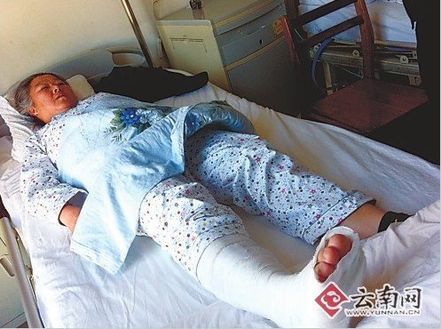 兩位阿姨都傷得不輕 本該救死扶傷的救護(hù)車(chē),在鬧市撞人后卻置傷者不顧開(kāi)車(chē)逃逸。昨早8點(diǎn)半左右,易門(mén)縣人民醫(yī)院一輛拉載病人的120救護(hù)車(chē),在昆明市巡津街紅燈路口搶過(guò)紅燈,迎面撞傷兩名婦女后,不僅沒(méi)有實(shí)施救助措施,反而開(kāi)車(chē)加速逃逸。交警通過(guò)排查,最終鎖定了肇事車(chē)輛的身份。 出門(mén)買(mǎi)菜被撞 據(jù)介紹,昨早8點(diǎn)半左右,家住附近的羅阿姨和黃阿姨相約出去買(mǎi)菜,在從巡津橋通過(guò)一T字路口,遠(yuǎn)處疾馳而來(lái)一輛120救護(hù)車(chē),想要強(qiáng)行通過(guò)紅燈路口。由于車(chē)速過(guò)快,救護(hù)車(chē)避讓不及,將羅阿姨和黃阿姨撞倒在地。然而,救護(hù)車(chē)并沒(méi)有及時(shí)停下來(lái),而是加快速度消失在車(chē)流中。由于救護(hù)車(chē)車(chē)速過(guò)快,路人只是隱約記下了云F的車(chē)牌字樣。 事發(fā)后,熱心市民看到滿臉血跡的兩人,急忙撥打了120和110,將羅阿姨和黃阿姨送到附近的昆明市第一人民醫(yī)院搶救。110接到報(bào)警后,也及時(shí)對(duì)過(guò)往的救護(hù)車(chē)輛展開(kāi)排查,最后在云南省第一人民醫(yī)院找到了肇事逃逸的車(chē)輛和司機(jī)。 昨天下午,晚報(bào)記者在醫(yī)院病房里見(jiàn)到了羅阿姨和黃阿姨。羅阿姨說(shuō),她今年53歲,被車(chē)撞倒后就昏迷過(guò)去了,最后被送到醫(yī)院進(jìn)行搶救后才蘇醒過(guò)來(lái)。經(jīng)過(guò)檢查,羅阿姨的頭部受傷最為嚴(yán)重,縫了10多針,而且脊椎骨折,其中一顆門(mén)牙也被撞得松動(dòng)。被轉(zhuǎn)入住院部繼續(xù)接受治療的黃阿姨,說(shuō)起該起事故的發(fā)生,顯得非常的氣憤:“救護(hù)車(chē)本來(lái)是救死扶傷的工具,撞了人還開(kāi)車(chē)逃跑,實(shí)在讓人氣憤和難以原諒。如果都像這樣,救命車(chē)豈不成了奪命車(chē)?”經(jīng)過(guò)檢查,黃阿姨的傷勢(shì)較羅阿姨要輕一點(diǎn),只是右腿骨折和右肩關(guān)節(jié)脫位。 肇事者已落網(wǎng) 昨天下午5點(diǎn)左右,接到昆明交警通知的易門(mén)縣人民醫(yī)院相關(guān)負(fù)責(zé)人,急忙趕往醫(yī)院看望了傷者,并為肇事司機(jī)的行為道歉,表示愿意墊付全部醫(yī)藥費(fèi)用。雖然肇事方表示愿承擔(dān)住院費(fèi)用及相關(guān)賠付,但羅阿姨和黃阿姨家人依舊擔(dān)心:醫(yī)院領(lǐng)導(dǎo)雖然態(tài)度誠(chéng)懇,醫(yī)藥費(fèi)也承擔(dān)了……但也難以預(yù)料以后會(huì)不會(huì)有后遺癥……對(duì)最后的處理結(jié)果是好是壞也沒(méi)有把握。 經(jīng)查,肇事逃逸車(chē)輛為易門(mén)縣人民醫(yī)院的120救護(hù)車(chē)。當(dāng)天上午,肇事司機(jī)張某是送一名病人前往云南省第一人民醫(yī)院,沒(méi)想到卻發(fā)生了這樣的事情。目前,肇事司機(jī)張某被交警帶走進(jìn)行調(diào)查。 |