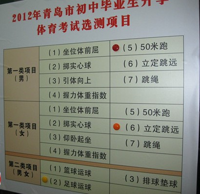 ![]() 2012年市初中畢業(yè)生升學(xué)體育考試選考項(xiàng)目