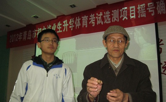 ![]() 學(xué)生代表抽取男生第一類選考項(xiàng)目后,社會(huì)監(jiān)督員公布結(jié)果 ????今年青島中考體育考試測(cè)試項(xiàng)目確定。今天,在2012年市初中畢業(yè)生升學(xué)體育考試選考項(xiàng)目抽簽儀式上,通過(guò)中國(guó)體育彩票專業(yè)搖號(hào)機(jī)搖號(hào),最終確定中考體育選考項(xiàng)目第一類為男生50米跑,女生立定跳遠(yuǎn),第二類為足球運(yùn)球,男女生通考。 ????14日下午4點(diǎn),2012年青島市初中畢業(yè)生升學(xué)體育考試選考項(xiàng)目抽簽儀式在青島實(shí)驗(yàn)初中多功能廳舉行?,F(xiàn)場(chǎng),采用中國(guó)體育彩票專業(yè)搖號(hào)機(jī)搖號(hào)的方式,來(lái)抽取今年中考的體育考試選考項(xiàng)目,社會(huì)監(jiān)督員將7位數(shù)字放在搖號(hào)機(jī)上,并進(jìn)行監(jiān)視。第一類選考項(xiàng)目由青島市實(shí)驗(yàn)初中的學(xué)生代表上前搖號(hào),首先倒要3圈后,再進(jìn)行搖號(hào),最終搖出5號(hào)數(shù)字代表的50米跑為男生選考項(xiàng)目。隨后,女生第一類選考項(xiàng)目也確定,為立定跳遠(yuǎn)。 ????結(jié)果較為意外的是第二類選考項(xiàng)目,此類包含籃球運(yùn)動(dòng),足球運(yùn)動(dòng),排球運(yùn)動(dòng),均為男女生通考項(xiàng)目。這一項(xiàng)由學(xué)生家長(zhǎng)上臺(tái)搖號(hào)抽取,“第二類選考項(xiàng)目是2號(hào)足球運(yùn)球?!碑?dāng)相關(guān)工作人員公布這個(gè)結(jié)果時(shí),在場(chǎng)的不少學(xué)生大呼困難。 ????記者在現(xiàn)場(chǎng)采訪了青島市實(shí)驗(yàn)初中初三八班的高同學(xué),對(duì)于抽取的足球運(yùn)球這一項(xiàng),他直喊太難了,因?yàn)槠綍r(shí)練習(xí)的很少,而足球運(yùn)球的技術(shù)性含量比較高,剩余的時(shí)間根本不夠練習(xí)?!按蠹叶伎疾缓?,反正都一樣?!蓖嗟囊晃慌f(shuō)道,平時(shí)上體育課根本沒有安排女生練習(xí)足球,平時(shí)她也從沒有踢過(guò),對(duì)足球可以說(shuō)是一竅不通,不過(guò)大多數(shù)同學(xué)都沒有練習(xí)過(guò),大家起點(diǎn)差不多,因此預(yù)計(jì)分?jǐn)?shù)也不會(huì)過(guò)于懸殊。(記者 王君莉) |