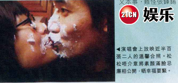 老婆給足面子,老公當(dāng)然疼老婆。松松來(lái)港開(kāi)唱,張鐸24小時(shí)貼身照顧,陪做頭、幫換衣服,全天候貼身照顧周到。