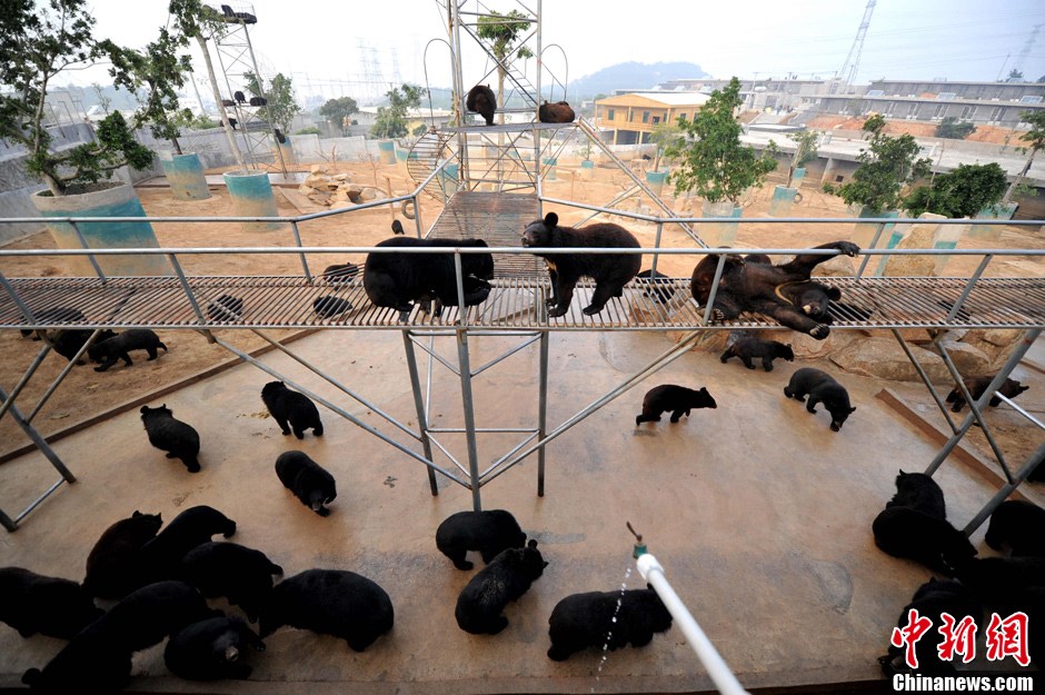2月22日,歸真堂“黑熊養(yǎng)殖基地”對(duì)外開(kāi)放,這個(gè)備受關(guān)注的“開(kāi)放日”吸引了來(lái)自海內(nèi)外百余名媒體記者。圖為黑熊養(yǎng)殖基地內(nèi)的場(chǎng)景。王東明攝