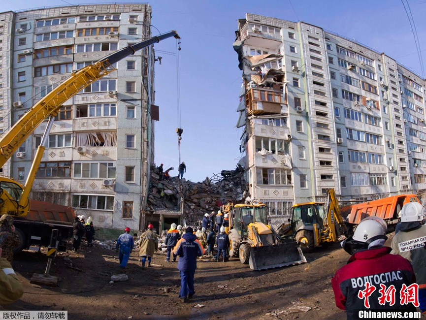 俄羅斯伏爾加河下游城市阿斯特拉罕一棟居民樓發(fā)生瓦斯爆炸并垮塌,救援隊(duì)于28日莫斯科時(shí)間下午5時(shí)許在廢墟下發(fā)現(xiàn)了第九具居民遺體。據(jù)統(tǒng)計(jì),事件造成12人失蹤,目前確認(rèn)9人死亡,其中5人已辨明身份,尚有3人下落不明。俄總理普京28日由俄緊急情況部部長(zhǎng)紹伊古陪同前往事發(fā)地。