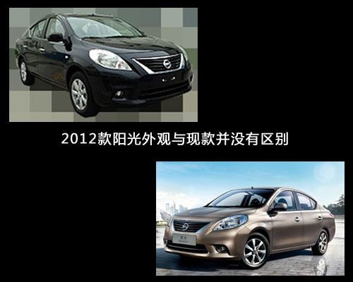 新陽(yáng)光是東風(fēng)日產(chǎn)旗下的一款主力三廂轎車(chē),自2010年廣州車(chē)展上市以來(lái),一直保持著月銷(xiāo)量過(guò)萬(wàn)臺(tái)的成績(jī)。近日網(wǎng)通社從東風(fēng)日產(chǎn)知情人士處了解到:為了保持新陽(yáng)光的市場(chǎng)競(jìng)爭(zhēng)力,東風(fēng)日產(chǎn)將于近期推出2012款新陽(yáng)光,首批上市的車(chē)型與現(xiàn)款相同(依然為6款)。下面就讓我們根據(jù)這款車(chē)的參數(shù)和諜照來(lái)?yè)屜攘私庖幌逻@款車(chē)型。 外觀無(wú)變化 車(chē)身高度降低4mm