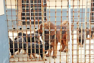 大傻很護(hù)崽。 藏獒護(hù)崽咬死下山覓食的野豬 昨天上午11點(diǎn)許,揚(yáng)子晚報(bào)記者來(lái)到張先生家的藏獒基地。藏獒基地內(nèi),一只小藏獒受了傷,腳有點(diǎn)跛。兩只大藏獒陪伴在它的左右,見(jiàn)到生人靠近,一陣狂吠。兩位村民抬著一個(gè)紅盆,里面放著一只死去的野豬。這只野豬有90斤重,喉管被咬斷。 張先生介紹,兩只大藏獒,黑褐色的是爸爸,叫大傻;毛發(fā)黃的,叫金鳳,是媽媽,它們育有10只小獒。有點(diǎn)跛腳的小藏獒,是晚上被野豬咬傷的。前天晚上8點(diǎn)多,自家東邊靠近大山的一側(cè),有個(gè)小門沒(méi)關(guān),這只野豬就拱了進(jìn)來(lái),并從藏獒基地圍欄邊的縫隙擠了進(jìn)去。 圍欄內(nèi),一窩小獒在沙地上玩耍。野豬發(fā)現(xiàn)小藏獒,發(fā)瘋似地沖上來(lái),對(duì)著一只小藏獒撕咬起來(lái)。這時(shí),大傻發(fā)現(xiàn)了野豬,由于自己被關(guān)在籠子里,無(wú)法上前救護(hù)小藏獒,就狂吠起來(lái),拼命用頭部撞擊籠子發(fā)出“咣當(dāng)咣當(dāng)”的響聲。 張先生聽見(jiàn)響動(dòng)后,急忙跑出屋查看,發(fā)現(xiàn)小獒被野豬咬了,急忙拿著小棍子去驅(qū)趕野豬,但是野豬不怕人,繼續(xù)圍著小藏獒們撕咬,時(shí)不時(shí)還向張先生露出獠牙。看著護(hù)崽心切的大傻,張先生便打開籠子,讓大傻去驅(qū)逐野豬?;\門一開,大傻一個(gè)箭步就撲了上去,與野豬開始互相撕咬。這只野豬別看未成年,但是體形較大,毫不示弱,用頭部去拱藏獒。經(jīng)過(guò)近一個(gè)小時(shí)的搏斗,大傻咬住了野豬的頸部,野豬也慢慢沒(méi)了力氣。 張先生見(jiàn)狀,怕大傻可能會(huì)咬死野豬,上前去拽大傻走,大傻不松口,后拿著棍子打大傻,大傻依然不松口。直到大傻咬斷野豬的氣管,野豬不動(dòng)彈了,它才松口。 護(hù)崽藏獒的體重比野豬重一倍 張先生的藏獒基地內(nèi)養(yǎng)了13只成年藏獒,還有十幾只藏獒崽子,這些小崽子都是張先生家成年藏獒自行繁殖的,其中大部分是大傻和金鳳交配繁殖的。據(jù)張先生介紹,他酷愛(ài)藏獒,自己養(yǎng)的一只藏獒曾一胎產(chǎn)下18只小藏獒(本報(bào)曾做報(bào)道)。他飼養(yǎng)藏獒很舍得花錢,曾花280萬(wàn)元購(gòu)得一只叫高原王的藏獒。而大傻和金鳳買來(lái)的時(shí)候是小崽子,總共花了不到30萬(wàn)。經(jīng)過(guò)張先生精心飼養(yǎng),大傻和金鳳都成年了,現(xiàn)在兩歲多一點(diǎn),前不久剛剛產(chǎn)下10只小藏獒。 張先生說(shuō),被咬死的野豬還是蠻兇悍的,它不過(guò)90斤,而大傻的體重足足有180斤。 |