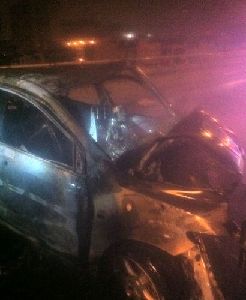 車禍現(xiàn)場(圖片均來自新浪微博) ??? 青島新聞網(wǎng)4月13日訊 據(jù)微博網(wǎng)友爆料,13日凌晨青島膠寧高架橋東部下橋口發(fā)生慘烈車禍,一輛小轎車撞到橋墩后引發(fā)自燃,司機未能逃生。 ????微博網(wǎng)友“@言子瑜”在凌晨2點38分發(fā)微博稱,“半夜下班回家,班車開到快速路東部下橋口時發(fā)現(xiàn)一輛轎車在燃燒爆炸。熊熊大火足有兩層樓高,聽同事說車?yán)镞€有人。我們離幾十米遠都能感到烤人的火焰,偶爾還有巨大的爆炸聲。有人拿著車載滅火器幫助滅火,一個女人哭喊著。” ????微博網(wǎng)友“@大陳小朋”在中聯(lián)廣場經(jīng)營臺球室,他在凌晨3點10分發(fā)布微博,稱發(fā)生事故的是一臺本田轎車,碰撞位置在膠寧高架下橋口橋墩處?!癅大陳小朋”稱,“車報廢自燃,司機在車內(nèi)活活被燒化”。 ??? 青島某資深汽車發(fā)燒友分析事故照片后推測,事故車型為08款本田鋒范。 ????今早8點20分,新浪認(rèn)證用戶“@青島電臺記者宮辰”發(fā)微博確認(rèn),“凌晨2:15,轎車撞橋墩,女司機遇難。” 青島廣通廣播官方微博今早也證實了事故消息。 ????目前青島新聞網(wǎng)還在進一步核實這起事故,隨后將發(fā)來后續(xù)報道。(本網(wǎng)記者) |