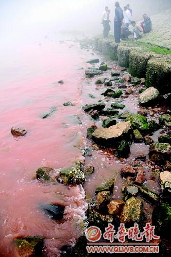 8日下午,五四廣場(chǎng)海域近百平米海水變紅。(記者 張曉鵬 攝) ????8日下午,青島五四廣場(chǎng)東側(cè)海域的海面上出現(xiàn)大量紅色漂浮物,面積近百平方米。經(jīng)中國(guó)科學(xué)院海洋研究所專家檢測(cè),紅色漂浮物是赤潮生物夜光藻的聚集帶。目前夜光藻分布面積較小、密度較低,暫時(shí)不能算作赤潮。 ????8日下午1時(shí)許,記者來(lái)到五四廣場(chǎng)看到,在建筑物“五月的風(fēng)”東側(cè)約100米處的海面上有大量紅色的漂浮物。當(dāng)時(shí)海邊霧氣很大,但海面上的紅色海水依然清晰可見,靠近岸邊近百平方米的海水都成了紅色?!吧衔邕€沒見海水變紅,下午隨著霧越來(lái)越大,海水也越來(lái)越紅?!痹诤_吔?jīng)營(yíng)拍照生意的小販王軍華向記者介紹。 ????“這大概是赤潮吧?每年5月—8月應(yīng)該是赤潮的高發(fā)期?!秉S島邊防檢查站的一名戰(zhàn)士猜測(cè),他們今天本打算來(lái)浮山灣這邊查看滸苔生長(zhǎng)情況,沒想到看到的是海水變紅。 ????為了弄清真相,記者用一個(gè)礦泉水瓶將海水取樣,里面紅色的漂浮物略帶有黏性,顏色呈粉紅,聞起來(lái)沒有什么異味,裝在瓶子內(nèi)會(huì)慢慢沉淀。 ????下午3時(shí)許,記者將取樣的海水帶到中國(guó)科學(xué)院海洋研究所。海洋生態(tài)與環(huán)境科學(xué)重點(diǎn)實(shí)驗(yàn)室副研究員韓笑天經(jīng)顯微鏡觀察后表示,紅色的漂浮物確定為赤潮生物夜光藻。韓笑天在調(diào)研海水變紅現(xiàn)場(chǎng)后表示,依照目前情況來(lái)看,夜光藻繁殖面積較小、密度較低,暫時(shí)不能算作赤潮。 ????那海水變紅是否跟日照赤潮有關(guān)?韓笑天推測(cè)不排除這種可能,“但是夜光藻是常發(fā)赤潮種類里的一種赤潮生物,也有可能是青島近海自發(fā)的?!?/p> ????青島市海洋與漁業(yè)局的工作人員告訴記者,目前紅色海水區(qū)域面積并不大。在往年這個(gè)季節(jié),青島已經(jīng)有零星赤潮出現(xiàn),但由于今年氣溫較去年整體低,海水溫度還未達(dá)到發(fā)生赤潮的臨界值,所以還未形成赤潮。(記者 張曉鵬) |