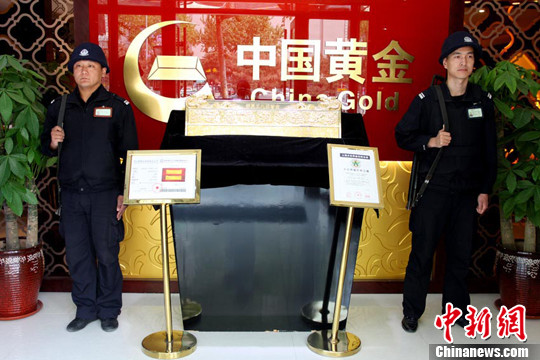 5月9日,一塊總重量為99.999公斤,含金量為99.999%的巨型金條在長(zhǎng)春展出,吸引許多市民前來(lái)參觀。據(jù)了解,這塊金條長(zhǎng)99.999cm,寬28.999cm,厚度為1.8cm,以北海九龍壁為設(shè)計(jì)原型,采用霧面噴砂、高浮雕、黃金壓制、澆鑄等工藝制作,目前中國(guó)僅有一塊,將在長(zhǎng)春展示七天。展出期間,始終有兩名安保人員荷槍守衛(wèi),以防不測(cè)。