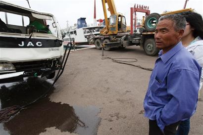 “請沿當前道路行駛!”由于不熟悉道路,外地來青送貨的魏學(xué)棟完全依靠導(dǎo)航儀指路,沒想到自己卻被導(dǎo)航儀“忽悠”了。昨日凌晨,54歲的魏學(xué)棟駕車行駛至黃島輪渡碼頭時一頭扎進了大海。幸運的是,他從破碎的前擋風(fēng)玻璃中逃脫,并無大礙。昨日下午3時許,黃島警方聯(lián)系了吊車和潛水員,將貨車從海中吊出。 駕駛貨車開進了大海 “我在黃島輪渡碼頭駕駛貨車不小心掉進海里了?!弊蛉樟璩?時許,黃島公安分局黃島派出所接到駕駛員魏學(xué)棟的報警。110民警立即趕到現(xiàn)場看到,剛從海中脫險的魏學(xué)棟渾身濕透,凍得瑟瑟發(fā)抖。 據(jù)了解,魏學(xué)棟因為對路不熟,一直用導(dǎo)航儀指路,沒想到卻掉到了海里,此時,周邊沒有任何人和過往船只,魏學(xué)棟的呼救沒有人聽見,他在冰冷的海水里掙扎了半個多小時才爬上岸?!罢媸莾e幸,幸虧車前擋風(fēng)玻璃掉下去的時候被拍碎了,要不然我就憋在車里出不來了?!蔽簩W(xué)棟說。民警連忙將自己的外套脫下披到了魏學(xué)棟的身上,緊接著把他送到附近的黃島中醫(yī)院救治。經(jīng)檢查,魏學(xué)棟僅受皮外傷,右小腿處劃了道口子。 埋怨導(dǎo)航“腦子進水” 昨日下午2時許,記者跟隨黃島邊防派出所民警來到黃島輪渡碼頭,見到了驚魂未定的魏學(xué)棟。“我昨天晚上7點多在平度大澤山拉了一車石材準備運往青島火車站附近,接近1噸重?!蔽簩W(xué)棟說,他根據(jù)導(dǎo)航儀的指引,從膠州營海上了膠州灣高速公路?!耙郧拔覜]走過這條路,全憑導(dǎo)航儀指引,我設(shè)置的目的地是青島火車站,導(dǎo)航讓我往濟南方向行駛,我就沿著走,從管家樓收費口下來后,繼續(xù)跟著導(dǎo)航走,本以為是去膠州灣隧道,沒想到來到了黃島輪渡?!蔽簩W(xué)棟說,由于海邊霧氣太大,周圍漆黑一片,再加上自己不熟悉地形,一時沒有分辨清楚,以為是到了隧道便繼續(xù)開車,不慎一頭扎進了海里。 “當時霧太大了,能見度也就兩三米,我本來路就不熟,跟著導(dǎo)航走,導(dǎo)航提示我向前走,結(jié)果走著走著,我就感覺車頭突然就沉下去了,我心里咯噔一下,心想這下完了?!蔽簩W(xué)棟說,接著前擋風(fēng)玻璃碎了,灌進來很多水,他才反應(yīng)過來,掉海里了?!斑@部凱立德車載導(dǎo)航儀是我花500元買的,他‘腦子’進水了,我被它忽悠了。”魏學(xué)棟抱怨說。 救援半小時貨車上岸 昨日下午2時,隨著海水逐漸退潮,在碼頭上能隱隱約約地看見沒在海中的貨車了。這時,邊防民警聯(lián)系了吊車和潛水員趕到現(xiàn)場對車輛進行打撈。民警與救援人員商定好救援方案,由潛水員先潛入水下摸清情況?!柏涇嚨箍墼诤V?,貨物都散落在海中了?!睕]多久,潛水員就浮出水面,向救援民警說明情況。 救援民警讓潛水員將鋼絲繩拴在貨車底部,然后由吊車將貨車拽上岸邊,整個過程用時半個小時。記者看到,由于受到?jīng)_擊,貨車的前擋風(fēng)玻璃破碎,保險杠及車頂部已經(jīng)破損?!斑@輛貨車是去年10月份剛買的,也沒有保車損險,損失全要自己承擔,7000多元的石材也泡湯了?!笨吹降跎习兜呢涇嚸婺咳牵簩W(xué)棟有些難受,強忍著眼中的淚水?!叭藳]事就行,其他的都不要緊?!币慌詮那鄭u趕來的外甥女安慰著他。(記者 劉海龍 通訊員 梁鐵君封凱明 攝影報道) |