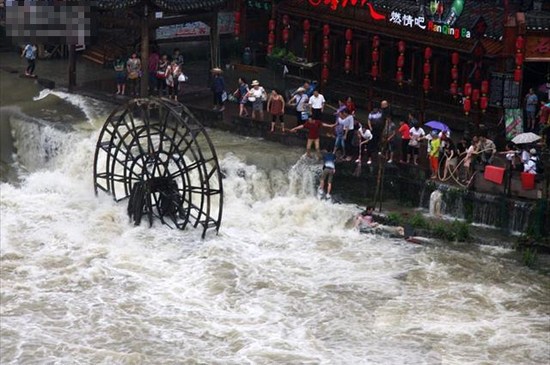 湖南湘西遭遇強降雨 鳳凰古城部分街道被淹