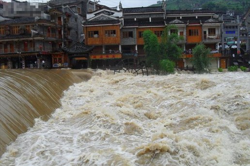 5月12日下午,一位武漢65歲游客游覽鳳凰古城時不慎掉入沱江。連日來的大雨使洪水上漲,水流湍急。危急時刻,一名游客和一名當(dāng)?shù)氐貙?dǎo)游跳入洪水中,將老人推上岸。