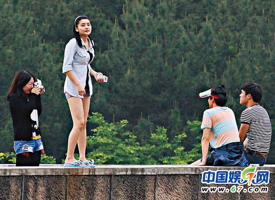 路過(guò)情侶要求和陳曉東合照,“咪神”很識(shí)相走開,激凸身材更加表露無(wú)遺。