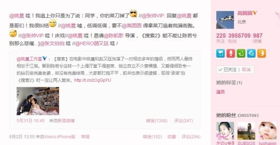 姚晨微博讓人民日報(bào)有危機(jī)感 1955萬粉絲超發(fā)行量7倍