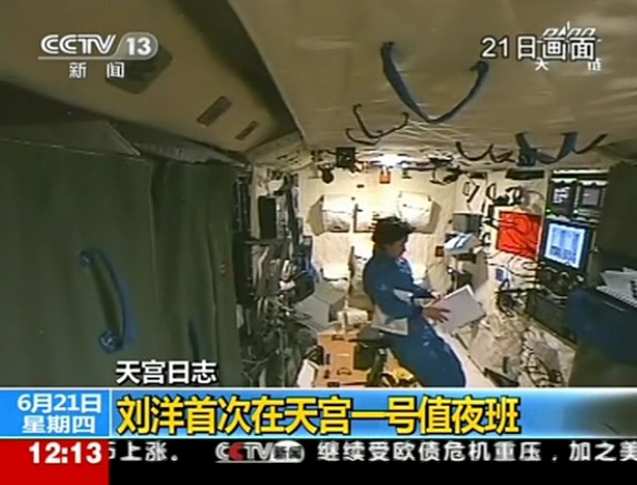 女航天員首次在天宮一號值夜班(視頻截圖)