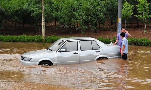 6月21日傍晚,濟南東部郊區(qū)突降暴雨,一時間馬路成河,交通阻斷,不少車輛被淹。水位下降后,大車才緩慢通過。近日濟南干旱少雨,這場大雨對于緩解旱情十分有利。圖為21日傍晚,濟南東部郊區(qū)突降暴雨,一時間馬路成河,交通阻斷。