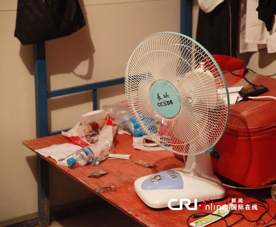 其中一間來自合肥工友的夫妻房,因?yàn)殡娏Σ粔颍瑹o法使用空調(diào),只有用電風(fēng)扇散熱降溫。