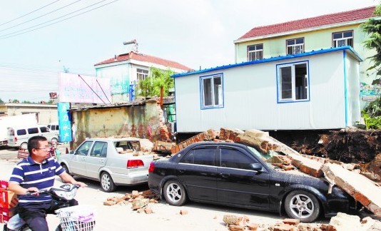 ????“你的車被砸壞了!”7月6日一大早,市民秦先生接到電話,他停在路邊的海馬轎車出事了。他過去一看,路邊幼兒園的圍墻倒塌,正好將他的車砸在下面,車身受損嚴(yán)重。一旁的捷達轎車也被砸中,“傷勢”稍輕一些。據(jù)了解,事發(fā)時間是6日凌晨2時許,沒有造成人員受傷,懷疑是5日下了一天的雨把墻泡透了,出現(xiàn)倒塌。事故發(fā)生后,房東賠償了捷達轎車車主500元錢,秦先生的車
