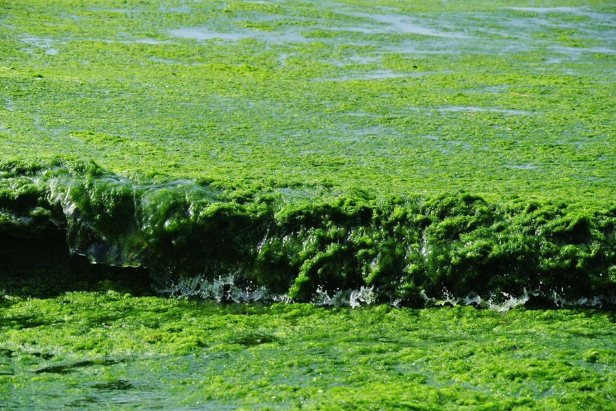 青島棧橋東側(cè)再現(xiàn)成片滸苔 似廣袤草原