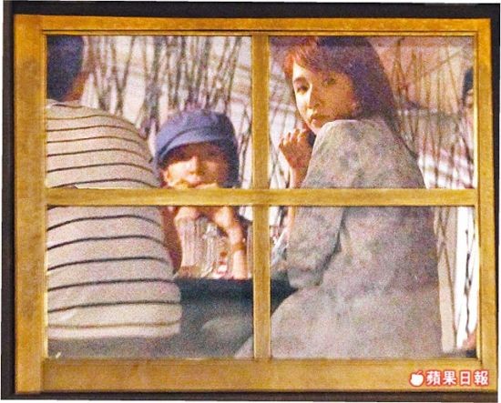 蕭亞軒(右)猛然回頭,像是驚覺被拍,中為楊謹華