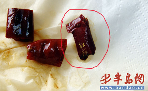 顧客在俏江南飯菜里面發(fā)現(xiàn)的紅旗煙頭