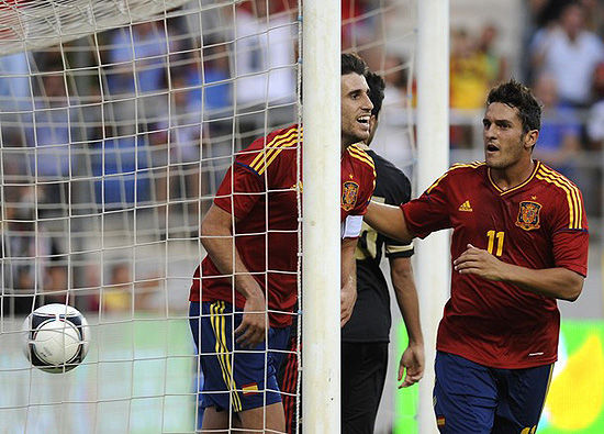 ????本場西班牙國奧的三名國家隊球員哈維-馬丁內(nèi)斯、馬塔和阿爾巴全部登場首發(fā)。開場階段,西班牙國奧在現(xiàn)場兩萬名球迷的助威之下逐漸占據(jù)了場上優(yōu)勢。第5分鐘,巴薩(微博)小將蒙托亞后排插上反越位成功,但射門被擋出。隨后