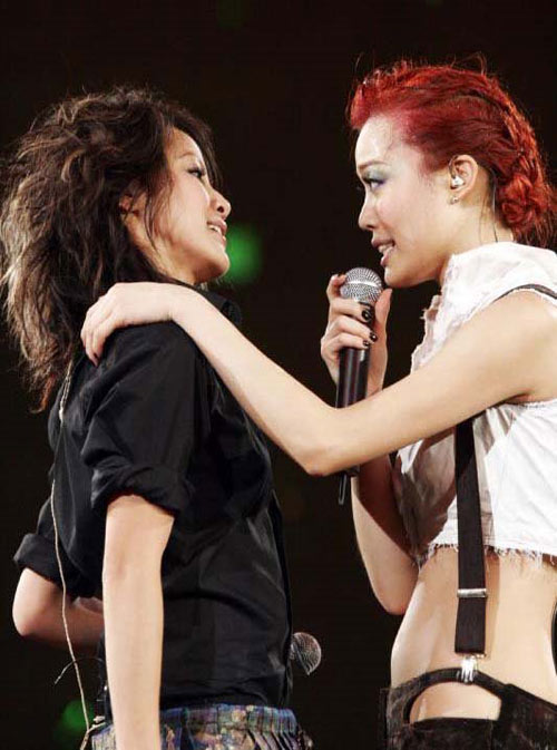 何韻詩和容祖兒,二人從1997年認識至今,容跟何韻詩是楊受成介紹認識的,當時她都還沒正式入行,在九九年她何韻詩為梅艷芳演唱會擔任和音,而楊受成就帶容去看梅姐的演出,在后臺楊受成就為她們作介紹了。她們彼此相愛了十多年,一直互相扶持。