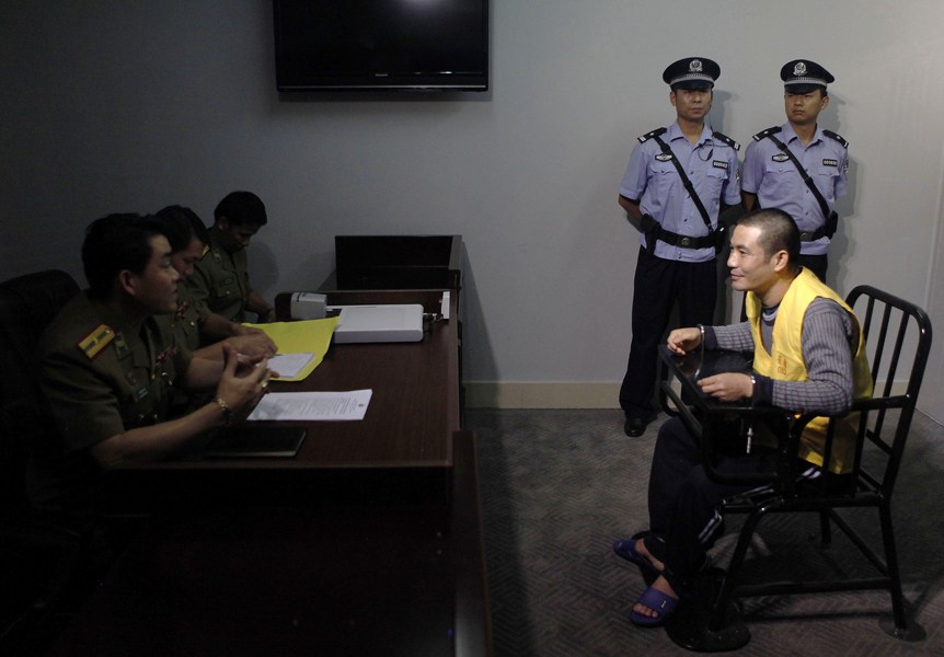 7月17日,老撾公安部工作組提審“金三角”地區(qū)特大武裝販毒集團(tuán)及“10·5”案件主犯糯康。