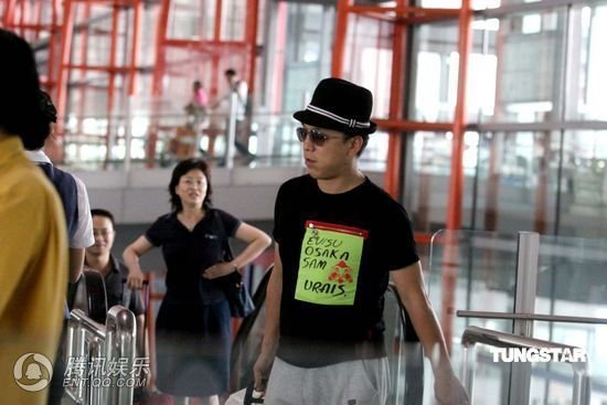 黃渤大叔扮相打哈欠出機場 等候豪華座駕(圖)