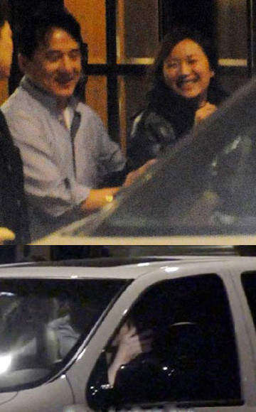 這是春節(jié)前某天深夜里的一幕。凌晨兩點左右,徐靜蕾的座駕駛到酒店門前迎駕,須臾一男一女帶著渾身酒氣步出酒店,正是逸興遄飛的成龍和徐靜蕾,但大哥還是大哥,女的卻已不是“玉女”。當時喝高了的徐靜蕾,醉意迷離,“豪放”之姿旁若無人,“玉女”本色蕩然無存。而一旁的成龍滿臉通紅,也喝了不少,但似乎比“玉女”清醒一些,他緊緊攙著徐靜蕾的胳膊,親自把徐靜蕾送上汽車。當徐靜蕾坐定、汽車啟動之際,成龍突然又探身上車,雙手捧住徐靜蕾的面龐,動情與她“激吻”,動作相當給力,過了好一會成龍才放手下車,戀戀不舍地揮手告別。