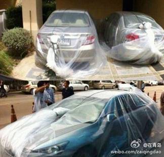 最火車“膜”—— 面對暴雨,如何保護愛車?“汽車保鮮袋”來幫忙!這種防水袋價格在百元左右,適用于多種車型。就使用方法來說,對車技要求很高。需要將車子開進防水袋中,使用完畢后再從袋中開出。網友調侃:光防水不夠,還得找個柱子綁緊了