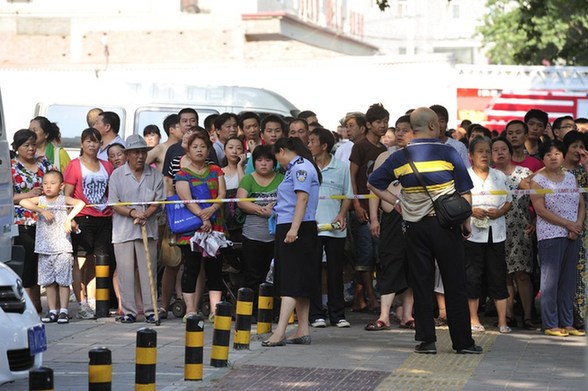 7月29日,西安市蓮湖區(qū)自強(qiáng)西路春曉馨苑外,現(xiàn)場(chǎng)圍觀的民眾。