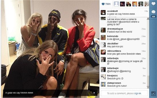????博爾特還大方地將與3名女孩的合照發(fā)在了自己的推特上。留言中,有不少人都對這三名幸運的姑娘表示羨慕嫉妒恨,也有人對博爾特表示羨慕嫉妒恨。