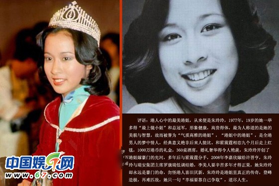 天生麗質(zhì)的朱玲玲出生在緬甸。9歲的時(shí)候和父母移居香港,因?yàn)闃O有語言天賦,朱玲玲在學(xué)校很快就學(xué)會(huì)了廣東話和英語。美麗再加上聰穎,使得她很引人注目。1977年,只有17歲的朱玲玲參加了香港最負(fù)盛名的“香港小姐選美大賽”,一舉奪得了“最上鏡小姐”和總冠軍,成為香港小姐史上第一個(gè)雙料冠軍。朱玲玲以她的美貌和智慧,被人稱為“氣質(zhì)高雅