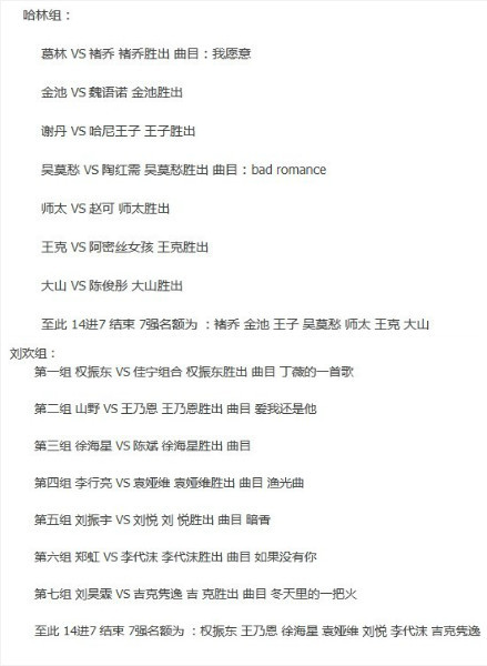 網(wǎng)上流傳劉歡與庾澄慶兩組選手PK結(jié)果(真實(shí)性未知)
